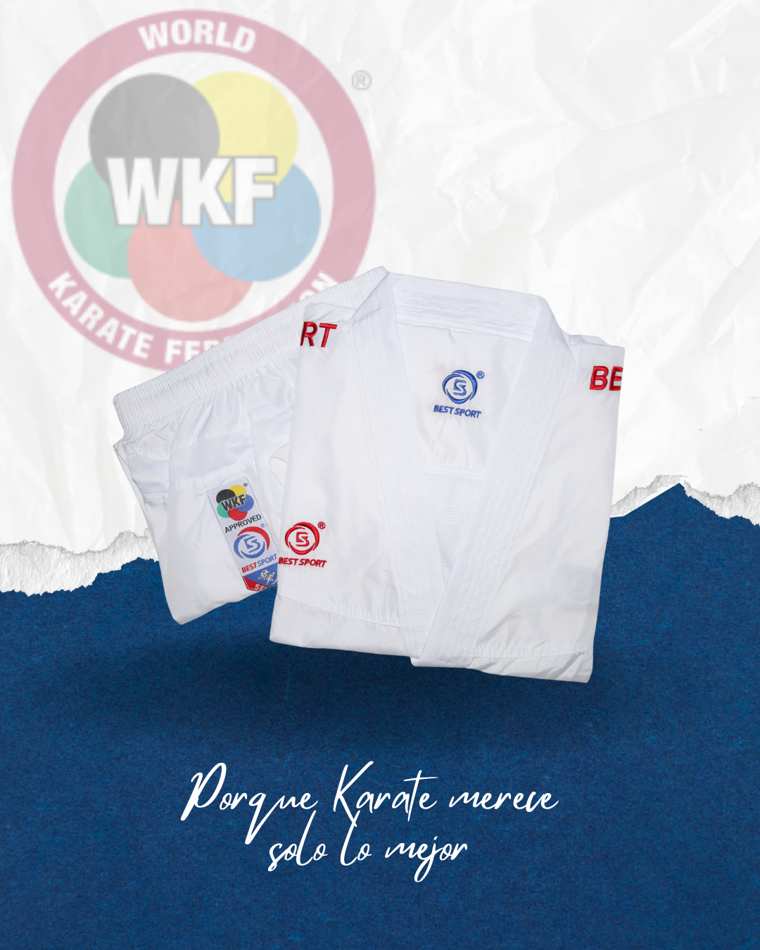 Bordado en rojo y azul en los hombros. Los karategis con bordados son obligatorios para las competiciones de la WKF: Serie A, PL, Campeonatos del Mundo, Campeonatos de Europa, Liga Juvenil y están permitidos para todos los demás torneos.